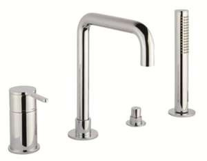 Bateria wannowa 4-otworowa Piper, z obrotową wylewką, złoto połysk